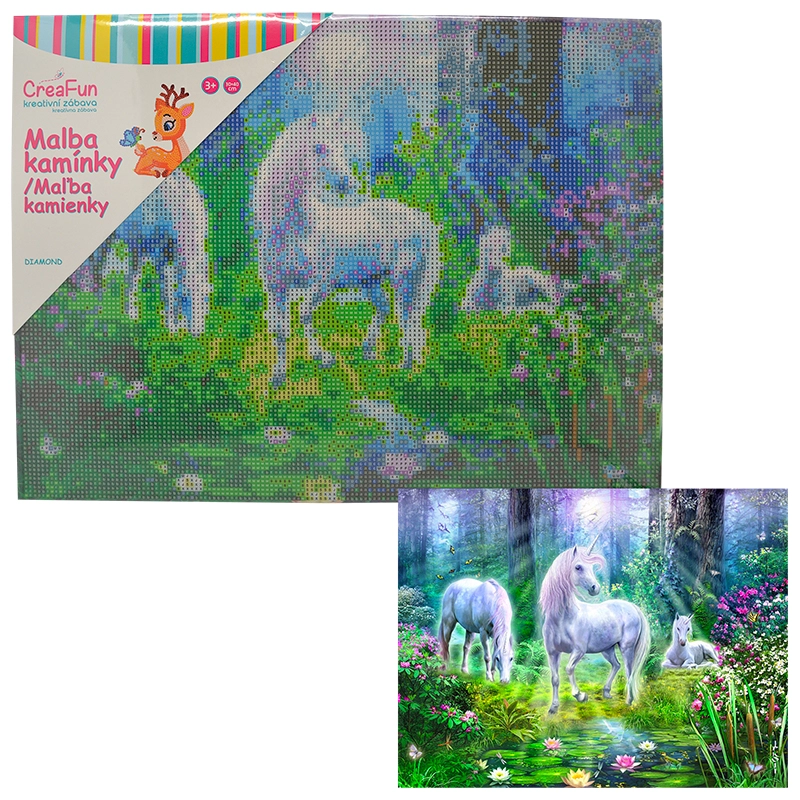 Lassen Sie die Fantasie der Kinder mit funkelnden Steinchen erstrahlen – Diamantmalerei für Kinder macht aus jedem Nachmittag kreativen Bastelspaß. Kinder-Sets für Diamantmalerei (Diamond Painting) enthalten ein vorgedrucktes Bild mit Klebefläche, runde Steinchen, einen Applikationsstift und Wachs – der Einstieg ist also einfach und unterhaltsam. Dank größerer Symbole und einer übersichtlichen Legende ist das Mosaik mit Steinchen auch für absolute Anfänger zugänglich, und das fertige Bild glänzt mit einem schillernden 5D-Effekt.