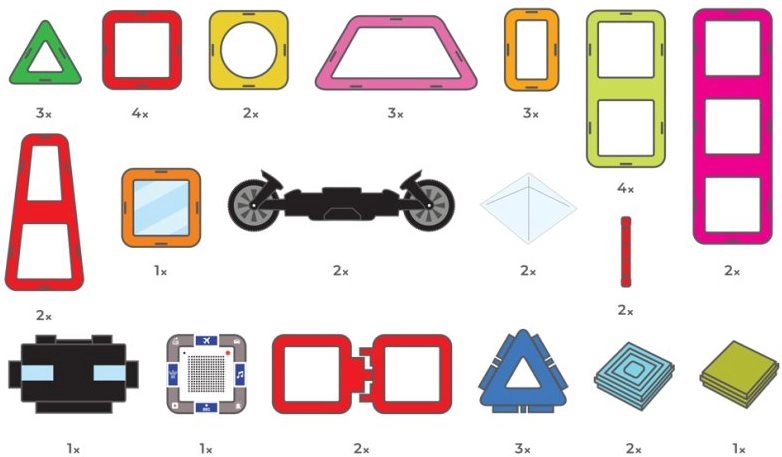 Leichte und robuste Teile mit hochwertigen Magneten verbinden sich intuitiv, sodass das Bauen einfach und flüssig gelingt. Alle Sets und Teile von Magformers sind voll kompatibel, was es ermöglicht, die Sammlung zu erweitern und immer größere Modelle aus Quadraten, Dreiecken, Rechtecken und weiteren Formen zu erschaffen. Die magnetische Konstruktionsspielzeug-Reihe Magformers unterstützt STEM-Lernen und entwickelt Logik, Vorstellungskraft und Geduld.