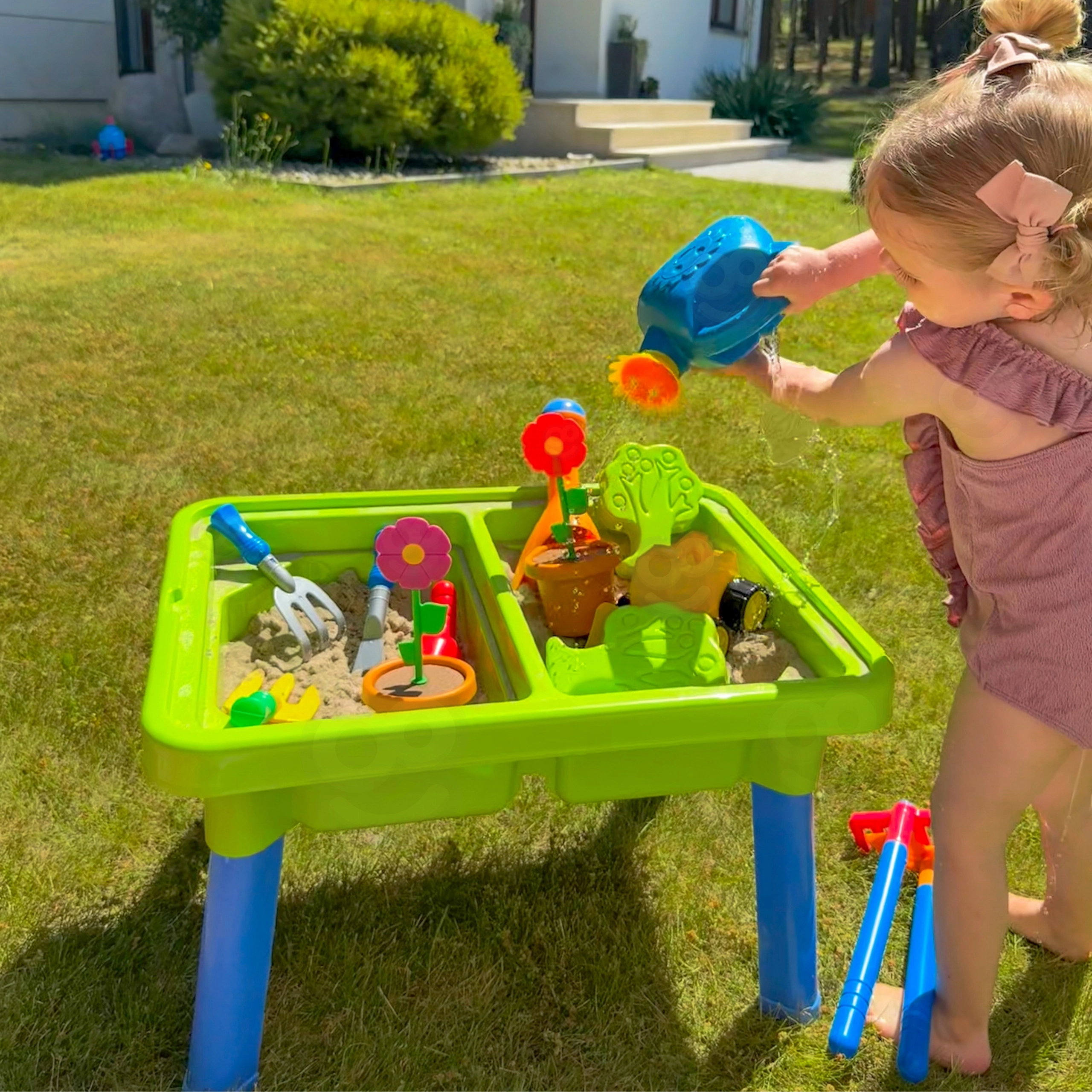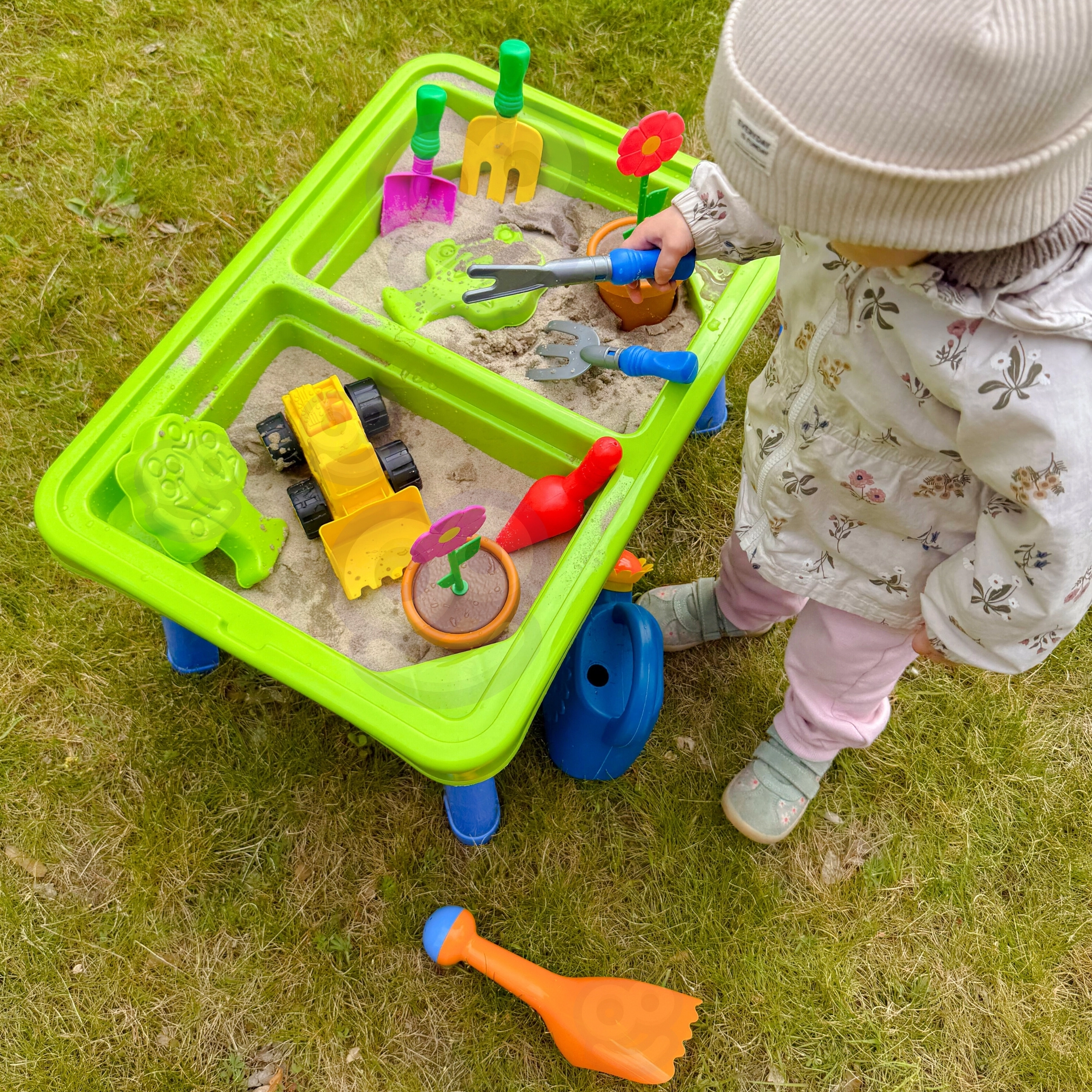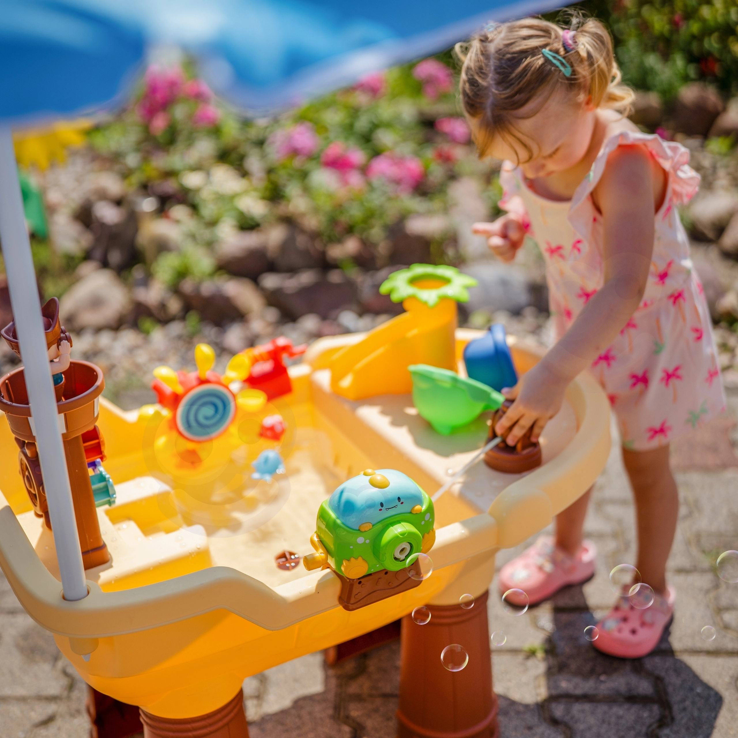 Verwandeln Sie Garten, Terrasse oder Balkon in einen kreativen Spielplatz mit Kinderspieltischen, die Spaß machen und zugleich fördern. Ein Kinderspieltisch für den Garten bietet Sand- und Wasserspiele – Umfüllen, Schöpfen, Bauen und einfache Experimente –, die ganz natürlich die Feinmotorik, die Sinneswahrnehmung und das Miteinander unterstützen. Ob Sandtisch, Wassertisch oder kombinierter Outdoor-Spieltisch: Es wartet jede Menge kreativer Spielspaß an der frischen Luft.