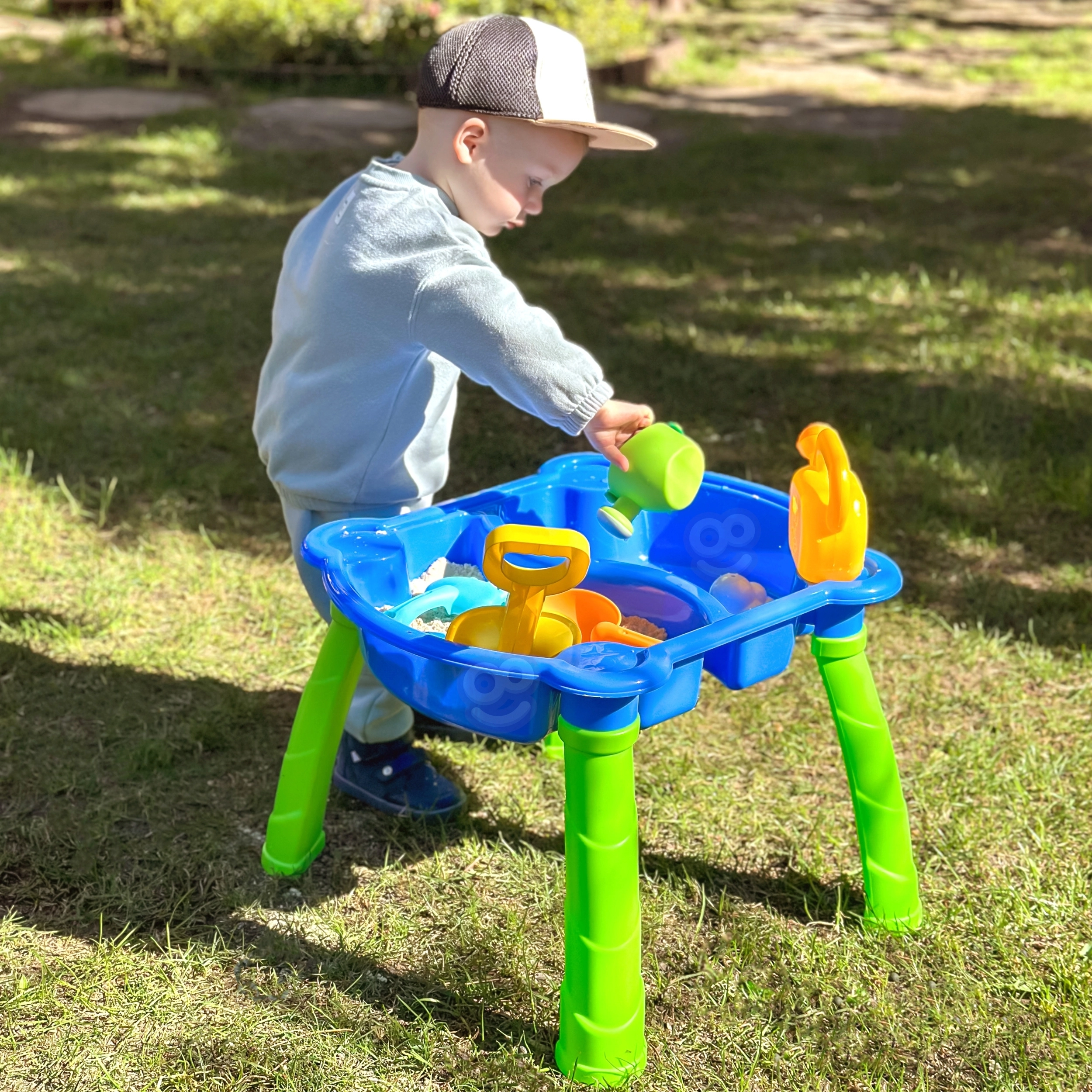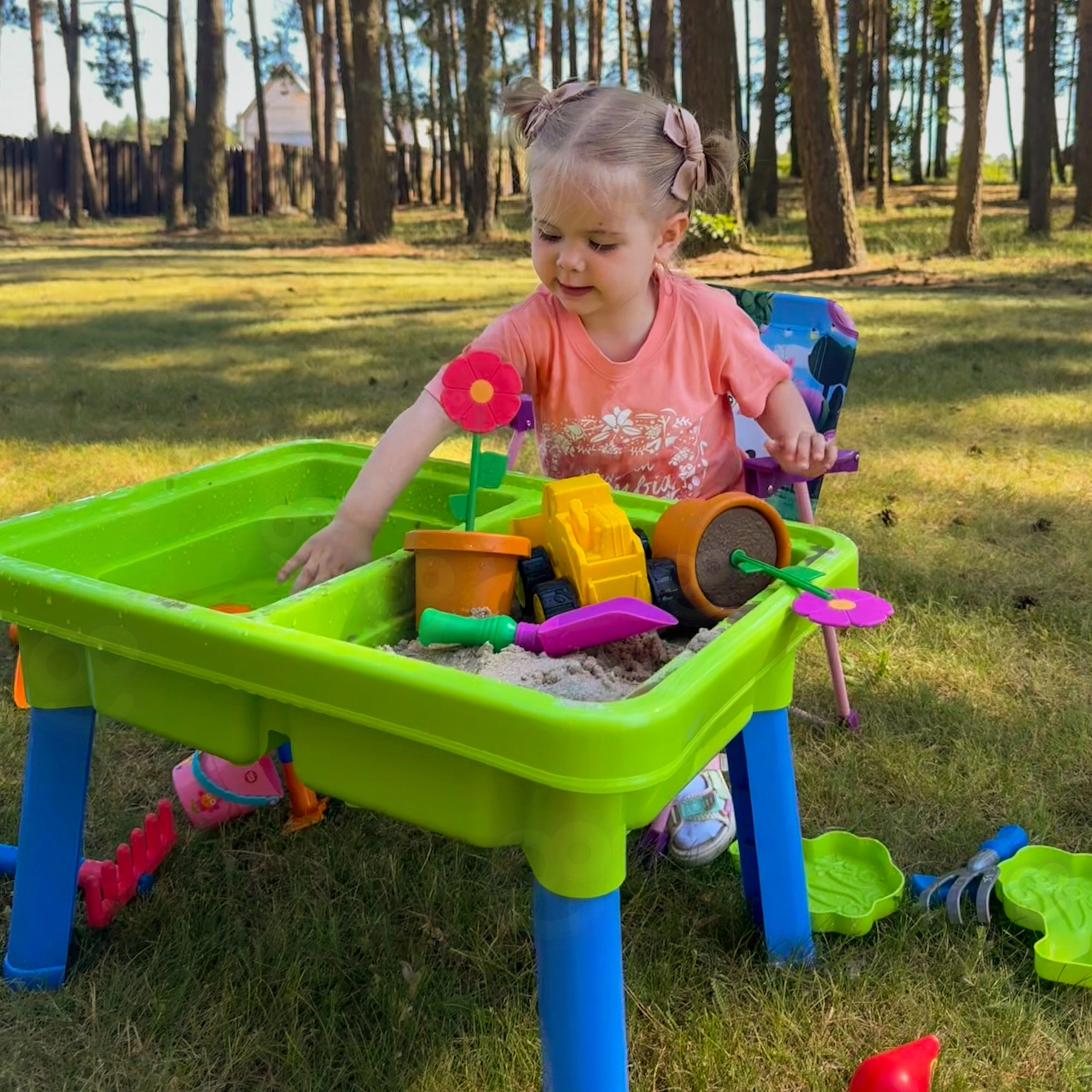 Wie wählt man den idealen Spieltisch für Kinder? Berücksichtigen Sie Alter und Körpergröße des Kindes (achten Sie auf eine ergonomische Höhe), den verfügbaren Platz, die Spielart (Sand, Wasser oder kombiniert), das Material sowie das Zubehör. Beliebt sind Sets mit Zubehör – Kinderspieltisch mit Zubehör, Förmchen, Mühlen, Gießkännchen und Rinnen für Wasserläufe –, die Kreativität, Fantasie und logisches Denken fördern. Kinderspieltische für draußen sind praktisch für Garten, Terrasse und Balkon; in der Saison bieten sie sensorisches Spiel mit Wasser und Sand, außerhalb der Saison dienen sie als multifunktionaler Arbeits- und Kreativtisch.