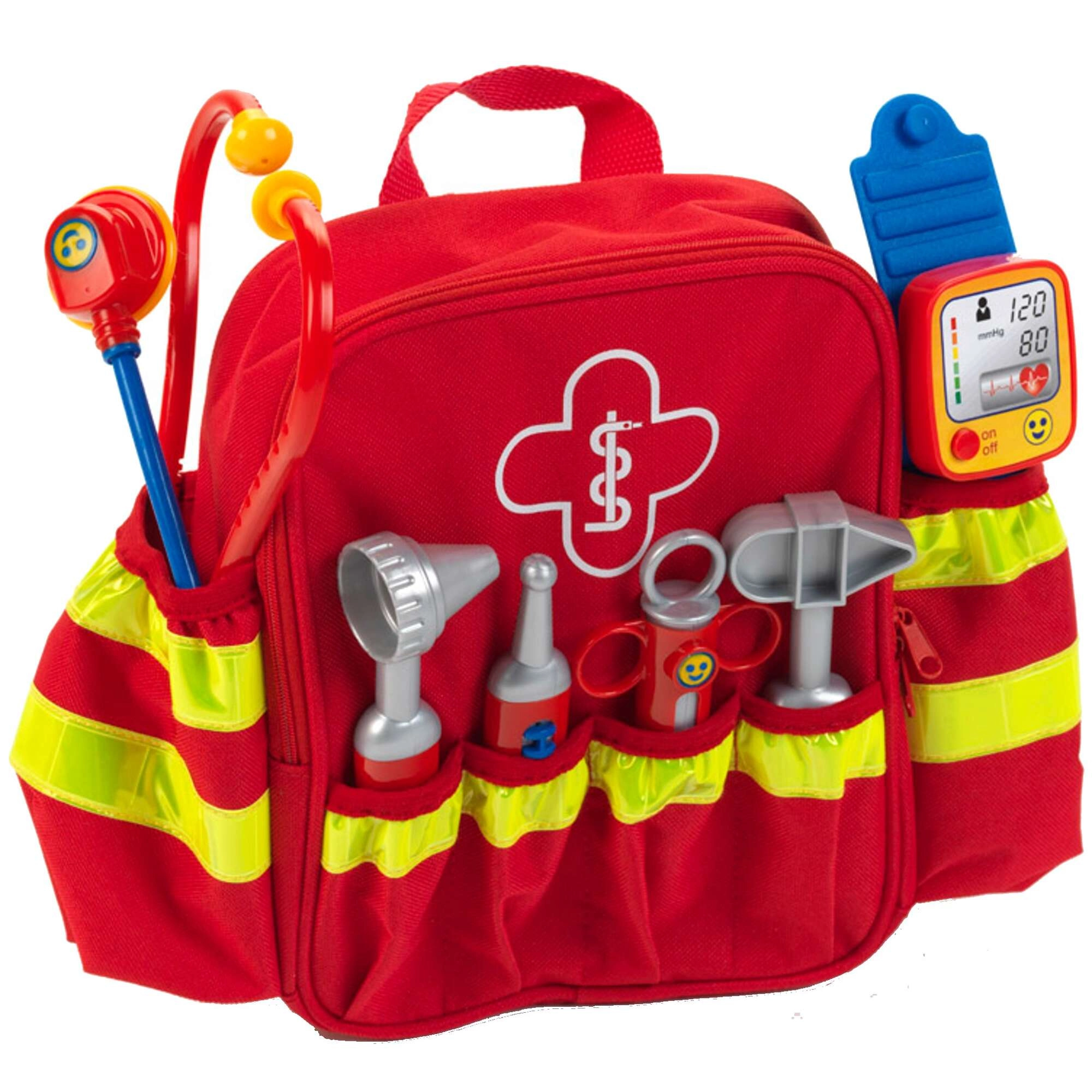 Wählen Sie aus Arztzubehör aus Holz oder Kunststoff: Kostüm und Kittel, Kinderstethoskop, Otoskop, Blutdruckmessgerät, Röntgenbilder, Patientenkarten und weiteres medizinisches Zubehör. Ein Kinder-Arztkoffer hält die Utensilien beisammen und erleichtert den Transport. Rollenspiele rund um den Beruf Ärztin/Arzt stärken Feinmotorik, Kommunikation, Empathie und Zusammenarbeit und fördern Role-Play-Szenarien voller Fantasie.