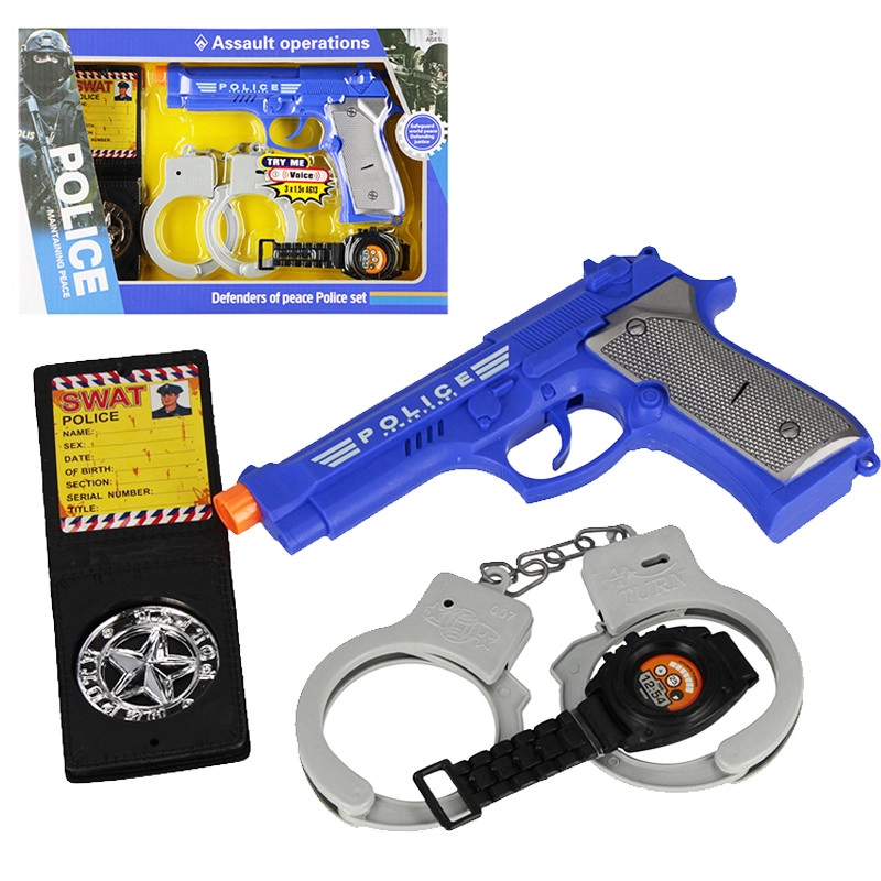 Streife im Einsatz – die Kategorie Polizisten lässt Kinderfantasie und Sirenen erklingen. Hier finden Sie Polizeispielzeug für das Rollenspiel als Polizist: realistische Polizeikostüme und Uniformen für Kinder mit Abzeichen, Mütze, Gürtel und Holster, Zubehör wie Funkgerät, Handschellen, Schlagstock, Pfeife, Taschenlampe und Anhaltekelle STOP sowie Verkehrskegel und Markierungen. Dieses kreative und pädagogische Spiel fördert Respekt vor Regeln, Verantwortungsbewusstsein und Teamkommunikation – ideal für Jungen und Mädchen.