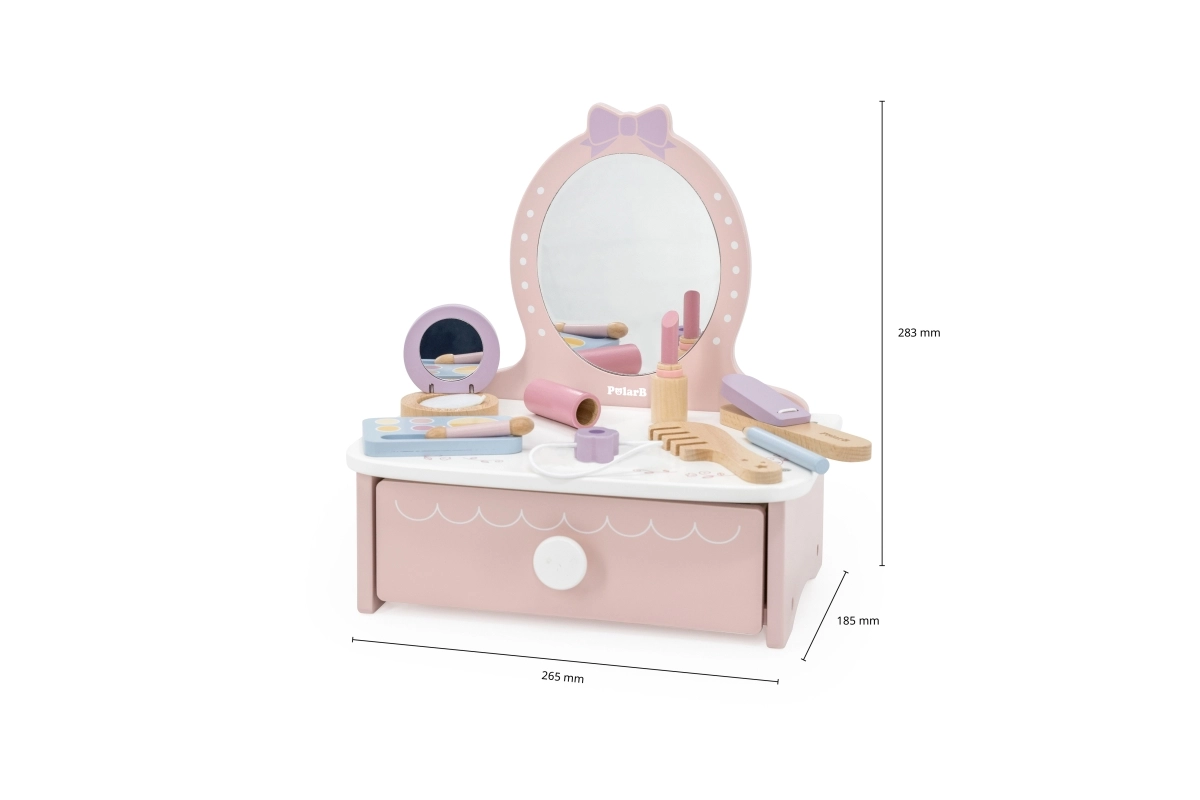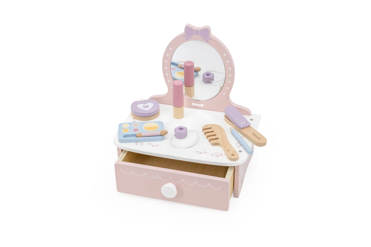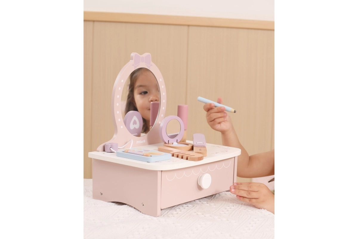 Im Sortiment finden Sie Holz-Kosmetikspielzeug für die Jüngsten (Paletten, Lippenstifte und Puderdosen ohne echte Farben) sowie wasserbasierte Kinderkosmetik für Ältere – Rouge, Glosse, Lidschatten und Glitzer für das Schminken sowie Nagellacke und Zubehör für Kinder-Maniküre und -Pediküre. Ein Kosmetikset für Kinder fördert Kreativität, Fantasie, Feinmotorik und Selbstausdruck und vermittelt spielerisch Regeln der Hautpflege und Hygiene.