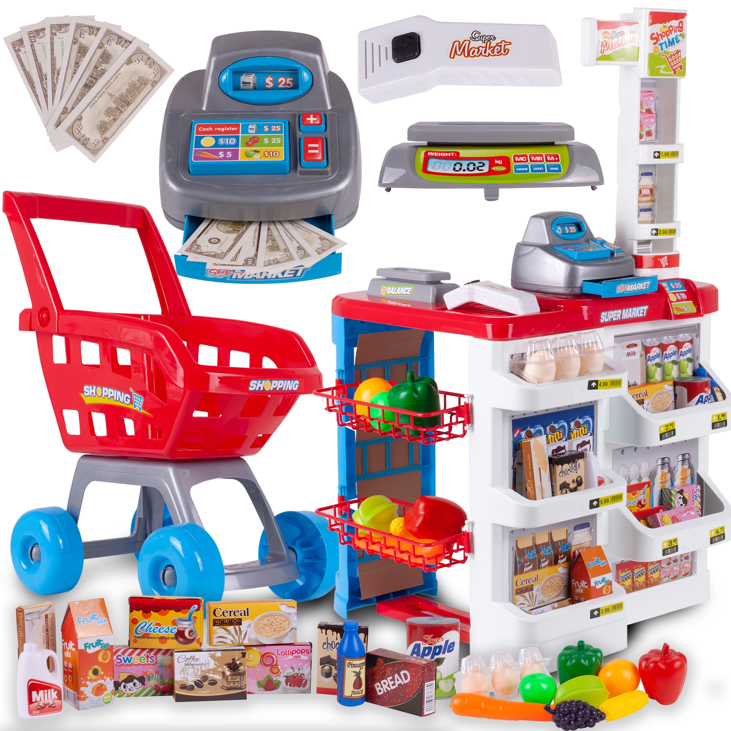 Das Spiel im Laden fördert spielerisches Lernen: Kinder üben Rechnen, entwickeln Kommunikations- und Sozialkompetenzen, trainieren die Feinmotorik und das logische Denken. Sets für Kinder ab 3+, 4+ und 5+ reichen von einfachen Theken mit Lebensmitteln bis hin zu komplexen Kassenstationen mit Touch-Kasse, Geldschublade für Scheine und Münzen, Waage, Mikrofon und Display.