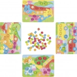 Dieses Einlegespeil von GOKI bietet Kindern sowohl Unterhaltung als auch Bildung. Die Kinder lernen, bunte Steine in Bilder einzusetzen. Das Spiel umfasst: