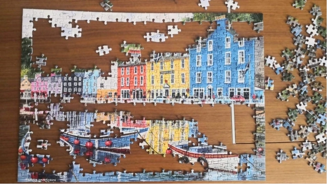 Entdecken Sie den Zauber von schottischem Tobermory durch dieses wunderschöne Puzzle mit 1000 Teilen. Das Zusammensetzen des Puzzles ermöglicht Ihnen, in die malerische Umgebung einzutauchen, in der Farbenfreude und Ruhe der Natur dominieren.