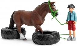 Bereiten Sie Ihr walisisches Pony auf das Agility-Rennen vor und finden Sie heraus, ob es alle Hindernisse souverän überwinden kann. Dieses Set enthält alles, was Sie für ein realistisches Trainingserlebnis benötigen, inklusive einer Jungenfigur, Reithelm und Hindernissen mit Start-Ziel-Flaggen. Details sind typisch für Schleich und nähern sich dem Landleben an.