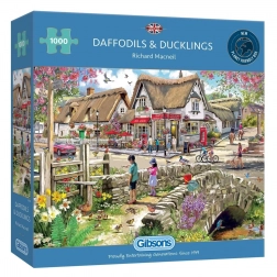 Genießen Sie Entspannung beim Zusammensetzen eines schönen Motivs mit frühlingshafter Atmosphäre – ein Puzzle mit einer Illustration von Narzissen und niedlichen Entenküken. Enthält 1000 Teile und misst fertiggestellt ca. 68 × 49 cm, ideal für Liebhaber ruhiger Abende und Puzzle-Sammler.