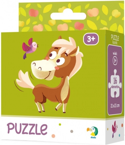 Entdecken Sie ein unterhaltsames Kinderpuzzle mit einem lieben Pferdchen-Motiv der Marke DODO. Dank der überschaubaren Anzahl von 16 Teilen ist das Puzzle eine tolle Wahl für Anfänger und fördert Geduld und Konzentration.
