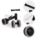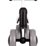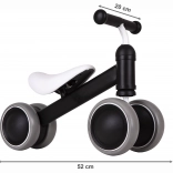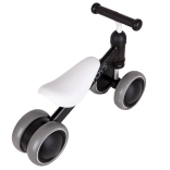 Für Sicherheit sorgen doppelte Vorderräder für mehr Stabilität und eine Lenksperre, die übermäßiges Einschlagen verhindert und das Umkipprisiko reduziert. Schaumstoffgriffe liegen angenehm in der Hand und sind rutschhemmend, während der weiche Sattel auch bei längeren Fahrten Komfort bietet. Die robuste Kunststoffkonstruktion ist gleichzeitig leicht (2,2 kg), wodurch das Laufrad einfach zu handhaben ist.