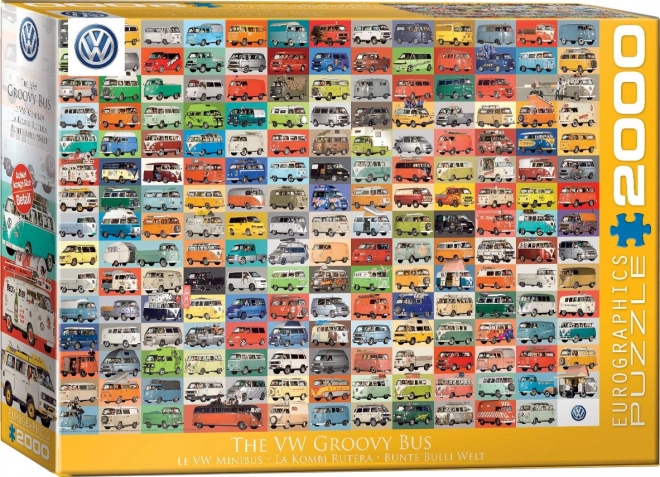 Das Puzzle VW Groovy Bus ist eine Collage von Fotografien deutscher Autos der Marke Volkswagen. Unter den Bildern darf auch ein mit Blumen verzierter Bus nicht fehlen – schließlich machten insbesondere die Blumenkinder (Hippies) dieses Modell berühmt.