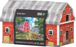 Entdecken Sie die Sammleredition von Puzzles in einer einzigartigen Blechdose, die einem Familienhof nachempfunden ist. Die Dose dient nicht nur als praktische Verpackung, sondern auch als originelle Innendekoration. Der Deckel bildet das Mittelteil des Hofes und ist leicht abnehmbar.