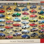 Genießen Sie das Premium-Puzzle von EUROGRAPHICS mit einem attraktiven Motiv aus der Automobilgeschichte und der Entwicklung der Pick-ups. Dank des ungewöhnlichen Stanzschnitts, der kein klassisches Raster kopiert, sind Ecken und Kanten der Teile vielfältig, und jedes Verbinden ist eine echte Herausforderung. Die ideale Wahl für erfahrenere Puzzleliebhaber oder als originelles Geschenk.