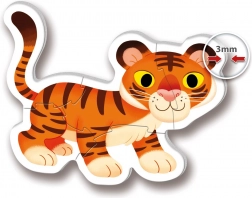 Dieses Set enthält vier einzelne Puzzles mit beliebten Safari-Tiermotiven. Dank der unterschiedlichen Teileanzahl (2, 3, 4 und 5) gewinnt das Kind schrittweise Sicherheit und Freude am Puzzeln. Große, stabile Teile mit einer Stärke von 3 mm sind für kleine Kinderhände gemacht und lassen sich leicht greifen und zusammenfügen.