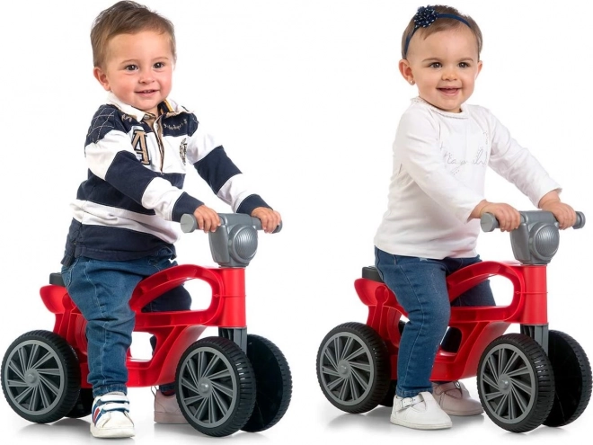 Die robuste Kunststoffkonstruktion hält dem täglichen Spiel stand, vier Räder sorgen für Sicherheit auch auf weniger ebenem Untergrund. Das Rutschfahrzeug ist so konzipiert, dass es für die kleinsten Fahrer stabil, leicht und einfach zu steuern ist.