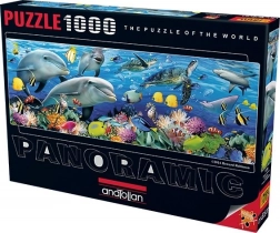 Genießen Sie Entspannung und Spaß mit dem Panorama-Puzzle ANATOLIAN mit den fertig gelegten Maßen von ca. 96 × 33 cm. Ein Motiv voller farbenfroher Fische, Korallen und Meerestiere – perfekt für Naturfreunde und alle, die ruhiges Puzzeln lieben. Dank des praktischen Ständers, in den Sie den Kartondeckel als Vorlage einsetzen, haben Sie das Motiv stets im Blick.