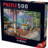 Tauchen Sie ein in Spaß und Entspannung mit diesem Puzzle, das einen herrlichen Blick auf eine Terrasse mit blühenden Glyzinien bietet. Dieses Puzzle bietet nicht nur eine großartige Möglichkeit, die Freizeit zu verbringen, sondern auch ein Gefühl der Zufriedenheit nach der Fertigstellung. Ideal für alle Puzzleliebhaber.