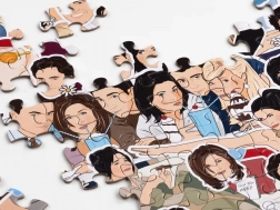 Erinnern Sie sich an Lieblingsszenen aus der Serie Friends mit einer wunderschönen Illustration der australischen Künstlerin Chantel de Sousa. Die detailreiche Collage zeigt Momente wie den Truthahn mit Sonnenbrille und Fez, den verrückten Tanz oder die spontane Hochzeit in Vegas.