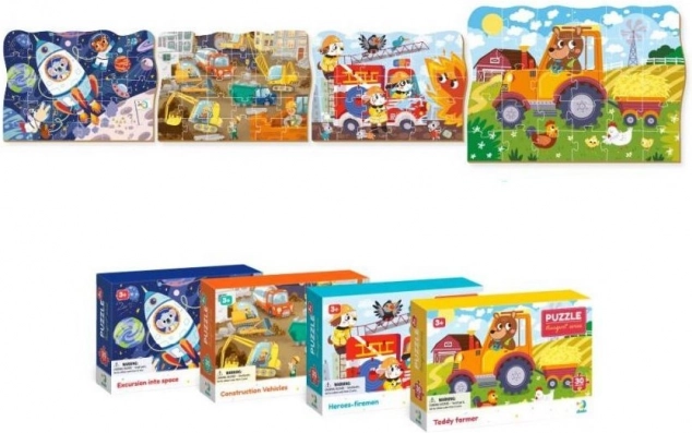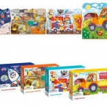 Das Puzzle lässt sich mit weiteren Motiven derselben Serie (Weltraum, Baustelle, Feuerwehreinsatz u. a.) verbinden, sodass Sie eine große thematische Karte der Verkehrsmittel und der Szenen rundherum gestalten können.