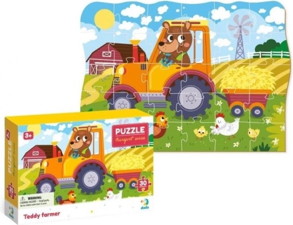 Entdecken Sie den Zauber der Serie DODO Transport mit dem Motiv eines Bauern. Dieses Puzzle mit 30 Teilen fördert die Feinmotorik, die Konzentration und die Fantasie, während Kinder eine bunte Szene vom Bauernhof zusammensetzen. Dank des Konturrands finden sich kleine Hände besser zurecht und das Puzzeln macht vom ersten Teil an Spaß.