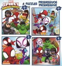 Die progressiven Puzzles SPIDEY und seine fantastischen Freunde 4-in-1 bringen Kindern Freude am Zusammensetzen und fördern gleichzeitig unauffällig Konzentration und Geduld. Vier verschiedene Puzzles mit 12, 16, 20 und 25 Teilen ermöglichen einen fließenden Übergang zu anspruchsvolleren Bildern und unterstützen die Entwicklung des logischen Denkens.