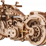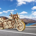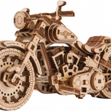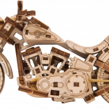 Ein mechanisches Holz-Bauset des beeindruckenden Cruiser V-Twin Motorrads wartet auf Sie! Das einzigartige Design und die überraschenden Details dieses Modells sorgen für Spaß und großartige Emotionen beim Zusammenbau. Sie können über das Vorderrad lenken. Das Motorrad mit Schwungradmechanismus fährt bis zu 1 Meter weit. Begeistern werden Sie die beweglichen Zylinder beim Drehen des Hinterrads sowie die Stoßdämpfer an der Vordergabel. Der Cruiser V-Twin ist mit Bremsscheiben und gummierten Rädern ausgestattet.