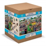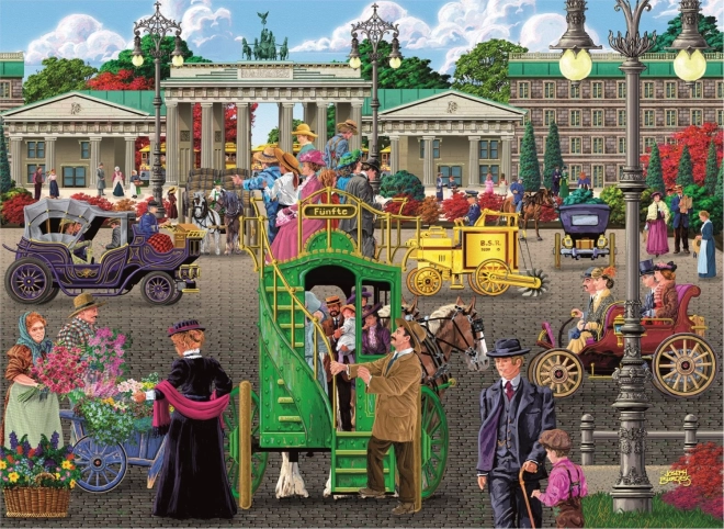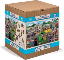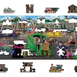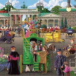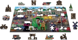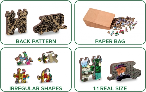 Dieses Holzpuzzle zeigt ein attraktives Motiv einer belebten historischen Straße und bietet dank der beidseitigen Ausführung eine doppelte Portion Spaß – auf der Vorderseite puzzeln Sie nach dem Bild, auf der Rückseite nach dem wiederkehrenden Muster und den Formen. Laserbetonte Details und speziell geformte Teile in Form von Tieren, Bauwerken und Gegenständen verleihen dem Puzzeln eine neue Dimension.