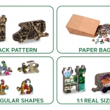 Dank der glatten, splitterfreien Kanten und der stabilen HDF-Platte mit 3–4 mm Stärke ist das Puzzle langlebig und angenehm in der Hand. Zudem ist es ECO friendly – ohne Kunststoffverpackung, verpackt in einem Papiersäckchen und einer Schachtel. Eine separate Vorlage für entspanntes Puzzeln ist enthalten.