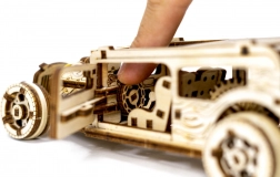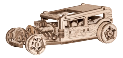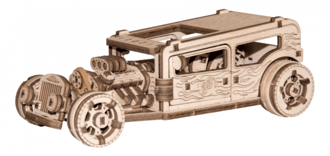 Genießen Sie den Aufbau eines realistischen Hot-Rod-Modells aus Naturholz. Dank präzisem Laserschnitt und cleveren Verriegelungen wird das Modell ohne Klebstoff und Werkzeug montiert. Der Hot Rod verfügt über drehbare Vorderräder, einen Schwungradmechanismus, öffnende Türen mit Anschlag und ein Kennzeichen wie bei einem echten Auto.