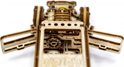 Durch die Dachöffnung sehen Sie einen detailreichen Motor, einen Doppelsitz sowie einen Schalthebel. Dank der durchdachten Mechanik macht das Modell beim Bauen, Spielen und Ausstellen gleichermaßen Spaß. Gefertigt aus umweltfreundlichem Birken-Sperrholz, im Lieferumfang ist eine bebilderte Anleitung enthalten. Schwierigkeitsgrad 3/5, ungefähre Bauzeit ca. 2 Stunden.