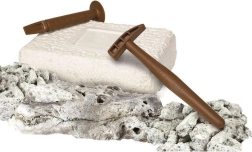 Entdecke die Welt der Paläontologie Schritt für Schritt. Mit Hammer und Meißel arbeitest du den Erdblock vorsichtig heraus und legst Knochen frei, aus denen du ein realistisches Piranha-Skelett zusammensetzt. Dank eines speziellen fluoreszierenden Materials leuchtet das Skelett im Dunkeln, nachdem es angestrahlt wurde – das verleiht der Entdeckung eine einzigartige Atmosphäre.