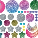 Exklusives Set zur Herstellung von Armbändern und Halsketten mit fantastischen Anhängern Crazy Stars und Crazy Moon, die IM DUNKELN LEUCHTEN! Entdecke verschiedene Kombinationen, um Schmuck mit funkelndem Effekt zu gestalten! Das Set enthält: bunte Kunststoffanhänger in Mond- und Sternform, im Dunkeln leuchtende Anhänger, Anhänger mit Silbereffekt, Metallketten, Haken und Metallringe, Aufkleber mit Glitzer, Zubehörkästchen, bebilderte Anleitung mit ergänzenden Texten auf Tschechisch.