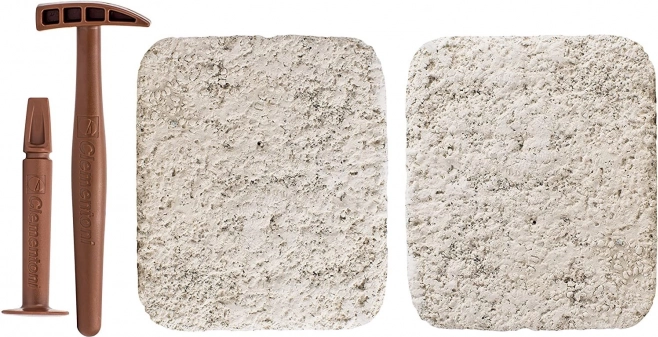 Benutze Hammer und Meißel, grabe die „Fossilien“ vorsichtig aus dem Block und setze ein detailliertes Skelett zusammen. Eine großartige Art, Geschicklichkeit und Geduld zu trainieren.