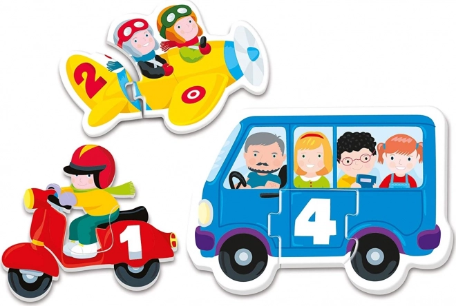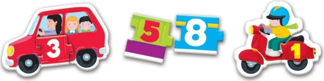 Dieses farbenfrohe Puzzleset ist ideal für das erste Zahlenlernen. Kinder zählen zunächst die Passagiere in lustigen Verkehrsmitteln und ordnen anschließend das passende Zahlenteil zu. Das intuitive Umriss-Paaren hilft, den Zusammenhang zwischen Menge und Ziffer schnell zu verstehen.