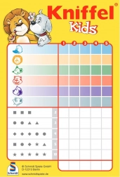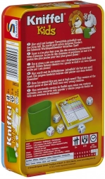 Kniffel Kids ist die beliebte Familienvariante für Kinder, die Beobachtungsgabe, Logik und einfaches Rechnen fördert. Die Spieler würfeln mit Tierwürfeln, versuchen die vorteilhaftesten Kombinationen zu bilden und notieren die Ergebnisse im beiliegenden Block. Dank der robusten Blechdose ist das Spiel perfekt für Ausflüge, den Urlaub oder das Restaurant.