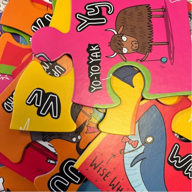 Jedes Puzzleteil zeigt eine einzigartige Tierfigur, die mit einem Buchstaben des Alphabets verknüpft ist. So werden Kinder spielerisch unterhalten und lernen gleichzeitig.