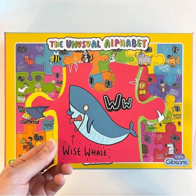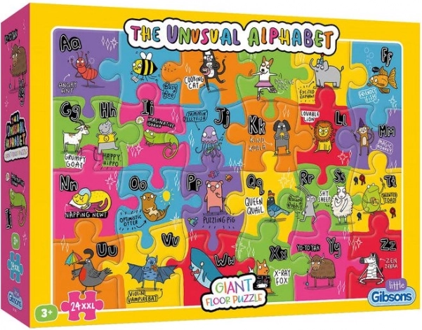 Entdecken Sie die Welt der Buchstaben und Tiere mit dem Gibsons Puzzle Unkonventionelles Alphabet. Das perfekte Lernspiel, das Lernen und Spielen verbindet. Jedes Teil ist groß genug (14 x 19 cm), um leicht gegriffen zu werden, und ist mit farbenfrohen Bildern verziert.