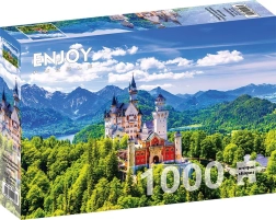 Erleben Sie einen herrlichen Blick auf das Schloss Neuschwanstein im Sommer mit diesem detaillierten Puzzle aus 1000 Teilen. Das Puzzle Schloss Neuschwanstein bietet stundenlangen Spaß und Entspannung, perfekt die Schönheit eines der märchenhaftesten Schlösser der Welt einfangend.