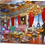 Ein luxuriös dekoriertes Interieur mit Blick auf den Eiffelturm bietet eine einzigartige Atmosphäre und eine visuell detailreiche Szene, die beim Puzzeln Spaß macht und auch gerahmt hervorragend wirkt.