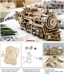 Erleben Sie die Aufregung beim Zusammenbau mit diesem einzigartigen 3D-Modell einer Holzlokomotive. Mit Federantrieb bewegt sich der Zug wirklich, während die Dampfpfeife Authentizität verleiht. Das Modell ist für eine einfache Montage ohne Klebstoff konzipiert, mit präzise geschnittenen Teilen aus Sperrholz.