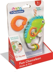 Das interaktive Rasselspielzeug Fröhliches Chamäleon ist der ideale Begleiter für die Kleinsten. Dank des praktischen Rings und der Schlaufe lässt es sich leicht am Kinderbett, Kinderwagen oder Autositz befestigen. Das Kind wird von Melodien und Soundeffekten angezogen, während rasselnde Kügelchen und Ringe die visuelle und auditive Wahrnehmung sowie die Handkoordination fördern.