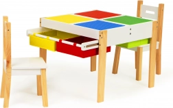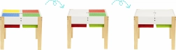 Zwei herausnehmbare Plattenteile bieten eine glatte Fläche zum Malen sowie farbige Unterlagen, die für Bausteine geeignet sind. So lässt sich der Tisch mühelos gleichzeitig für verschiedene Spiele anpassen.