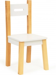 Inklusive zwei bequemer Stühle mit Kiefernbeinen und Sitz aus MDF. Die Abmessungen sind auf den Tisch abgestimmt und sorgen für komfortables Sitzen und eine korrekte Körperhaltung.