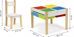 Schaffen Sie für Kinder eine eigene kreative Ecke mit dem ECOTOYS-Set, das Spieltisch und Stauraum vereint. Robuste Beine aus Kiefernholz und eine strapazierfähige MDF-Platte sorgen für Stabilität und Langlebigkeit. Durch das klare skandinavische Design passt das Set ideal ins Kinderzimmer, in den Spielraum oder Wartebereich.