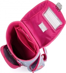 Das Hauptfach ist ausreichend geräumig für alle Schulutensilien der 1. und 2. Klasse, die Fronttasche ist ideal für die Brotzeit. Der feste Boden schützt den Inhalt und erhöht die Standfestigkeit gegen Umkippen. Der Sicherheitsverschluss erleichtert das Schließen, und reflektierende Elemente erhöhen die Sichtbarkeit des Kindes in der Dämmerung und bei Dunkelheit.