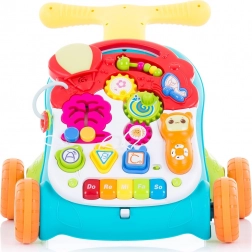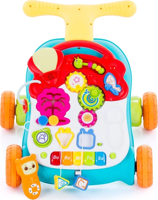 Ein Spielzeug, zwei Möglichkeiten. Kleinkinder trainieren das Gehen mit Sicherheit, und nach dem Umbau erhalten sie einen eigenständigen Spieltisch zum Entdecken von Tasten, Rädchen und Klaviertasten.