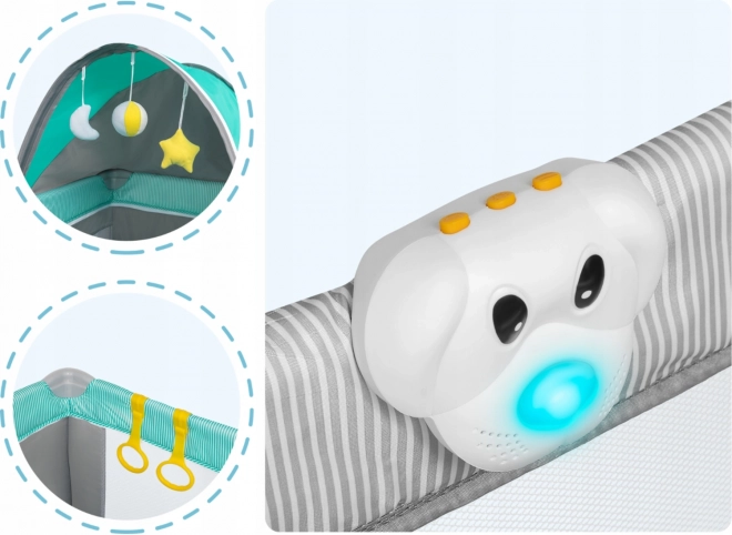 Das Reisebett LIONELO Sven Plus ist die ideale Wahl für Urlaub und Familienbesuche. Dank stabiler Standfüße und Rollen mit Bremse lässt es sich leicht verschieben und sicher fixieren. Zwei Höhenstufen der Matratze ermöglichen bequemes Ablegen sowohl von Babys als auch größeren Kindern, und der seitliche Eingang mit Reißverschluss sorgt für leichten Zugang und Spaß.