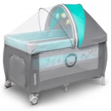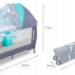 Praktisches und sicheres Reisebett für Kinder mit seitlichem Reißverschluss-Eingang, zwei Matratzenhöhen und umfangreichem Zubehör. Bietet ein System gegen unbeabsichtigtes Zusammenklappen, ein Insektennetz, Rollen mit Bremse und eine Wickelauflage für maximalen Komfort unterwegs.