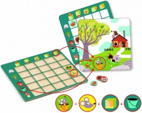 DJECO Topologix ist ein cleveres Lernspiel, das Kindern hilft, räumliche Beziehungen zu verstehen. Die Aufgabe besteht darin, das Tier mit dem Objekt auf der Karte richtig zuzuordnen und zu bestimmen, ob es über, unter, auf, in oder neben ihm ist. Kinder lernen spielerisch, trainieren die Konzentration und stärken die Feinmotorik beim Umgang mit den Spielsteinen.
