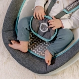 Der Spielbügel mit weichen Spielzeugen fördert die sensorische Entwicklung und beschäftigt das Kind, während die weiche Polsterung und die verstellbare Rückenlehne für Komfort sorgen.